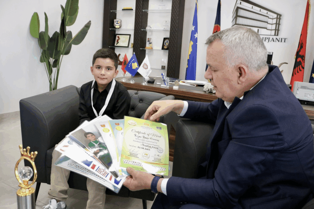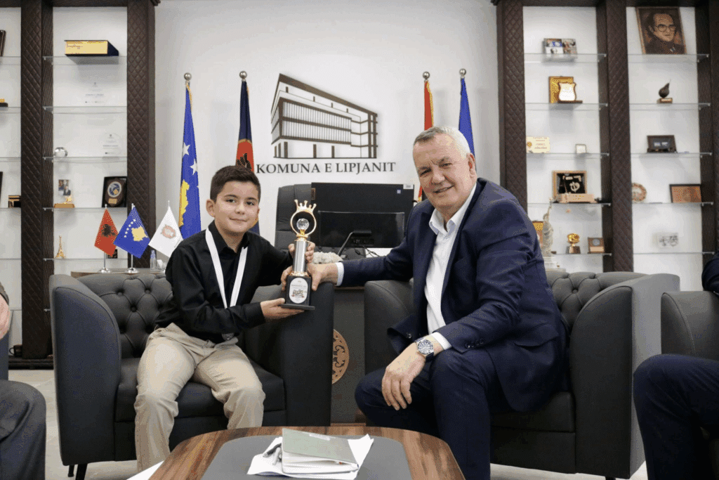 Kryetari i Komunës së Lipjanit, z. Imri Ahmeti, ka pritur sot në takim nxënësin e SHFMU “Vëllezërit Frashëri”, Rejan Krasniqi, fitues në Garat e 14-ta Ndërkombëtare të Abakusit dhe Aritmetikës Mentale, të organizuara nga Brainobrain International, të mbajtura në Kloten, Zürich të Zvicrës.